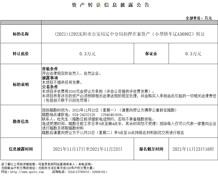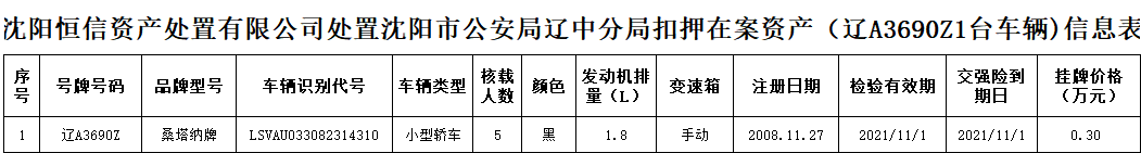 (2021)1292沈陽市公安局遼中分局扣押在案資產(chǎn)(小型轎車遼A3690Z)轉(zhuǎn)讓