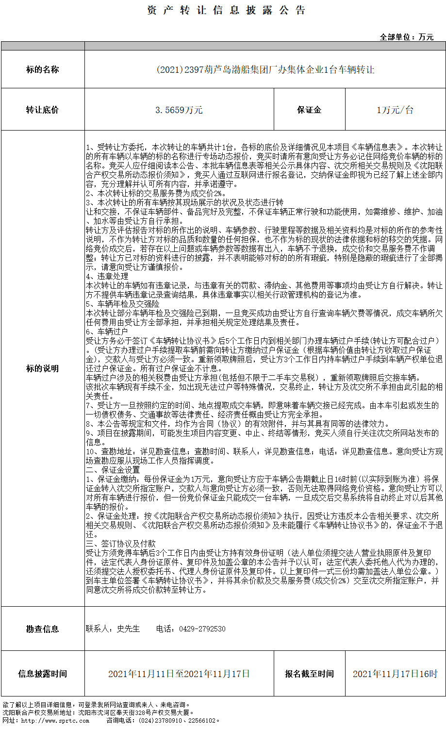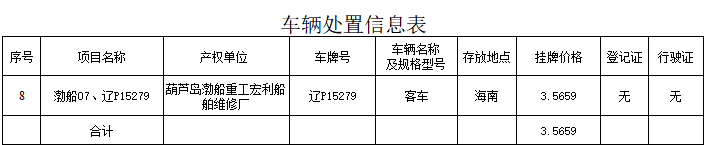 (2021)2397葫蘆島渤船集團廠辦集體企業(yè)1臺車輛轉(zhuǎn)讓