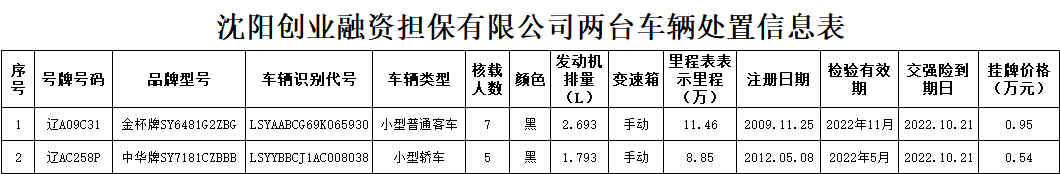 (2021)1307沈陽創(chuàng)業(yè)融資擔保有限公司01 遼A09C31