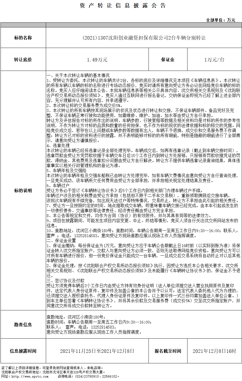 (2021)1307沈陽創(chuàng)業(yè)融資擔保有限公司02 遼AC258P