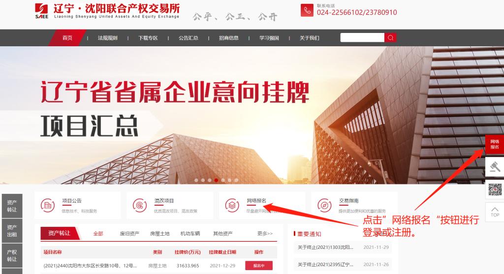 歡迎您使用沈陽聯(lián)合產(chǎn)權(quán)交易所網(wǎng)絡報名系統(tǒng)(以下簡稱網(wǎng)絡報名系統(tǒng)),網(wǎng)絡報名系統(tǒng)是為參與項目的意向受讓方提供網(wǎng)絡報名、資質(zhì)審核、網(wǎng)絡報名項目查詢等服務的平臺。請意向受讓方參照以下指南進行網(wǎng)絡報名操作。