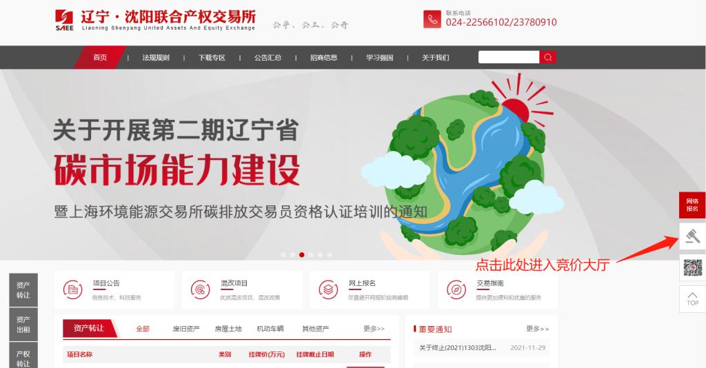 12、您即可在網(wǎng)站首頁進入競價大廳或登錄權(quán)益云競價大廳參與此項目的競價。